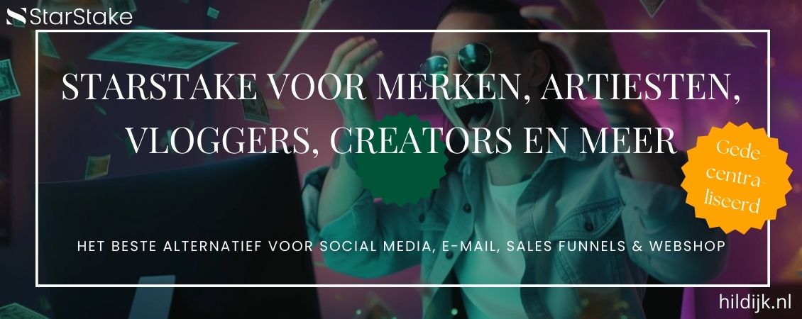 StarStake uitleg voor merken, artiesten, vloggers, creators en meerHet beste alternatief voor social media, e-mailmarketing, sales funnels en webshop!